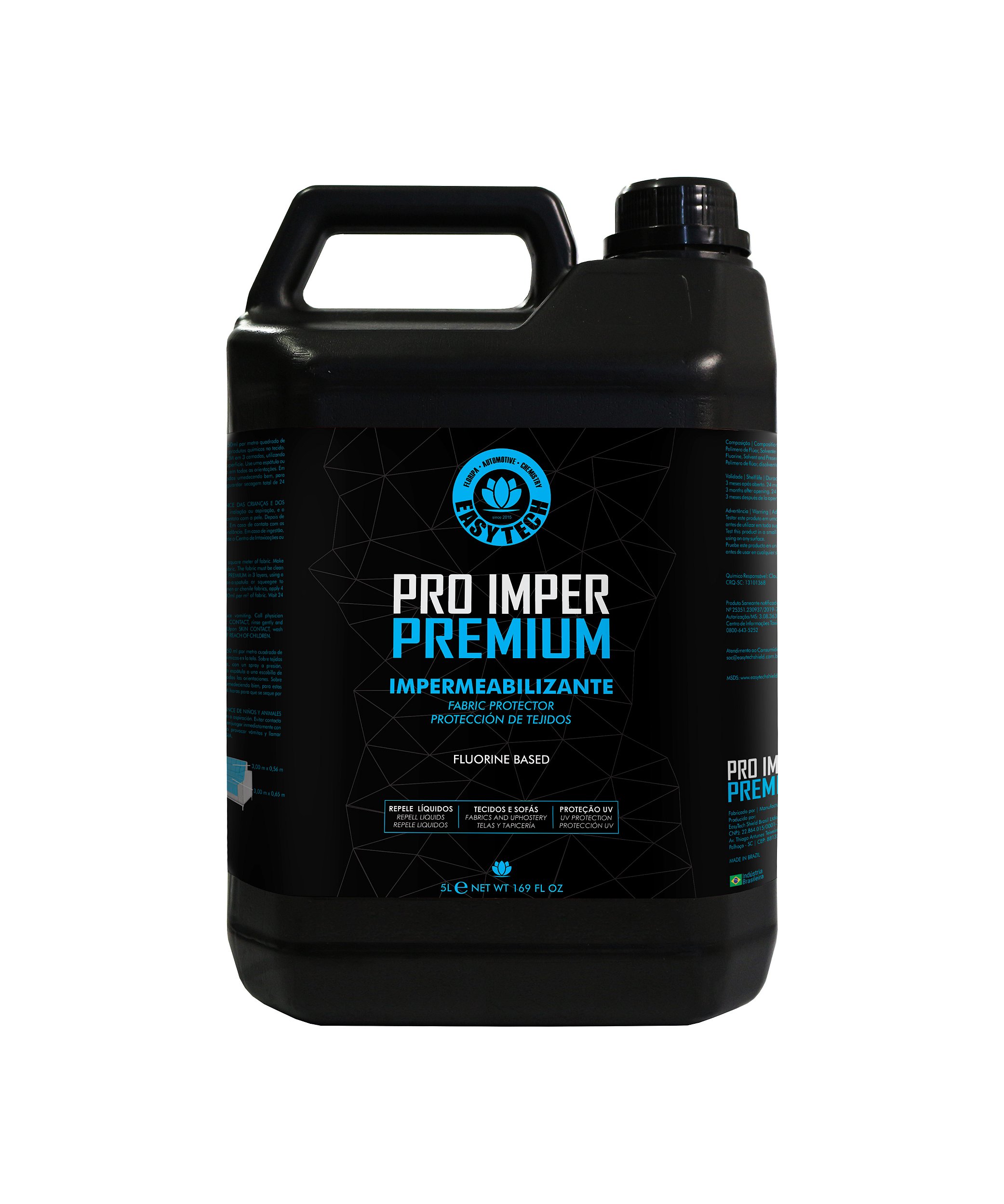 Pro Imper Premium impermeabilizante de tecidos é um produto a base de água, baixíssimo odor e não inflamável, fabricado com polímeros de silício e fluor sintetizados, altamente resistentes.  Ajuda a preservação de tecidos evitando manchas de líquidos que podem, eventualmente, entrar em contato com o tecido.